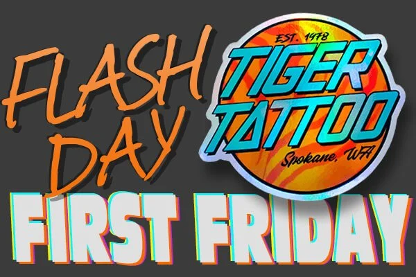 THE FIRST FRIDAY OF EVERY MONTH WE DO AN ALL DAY FLASH DAY CALLED “FIIRST FRIDAY FLASH DAY” ALL ARTISTS -ALL DAY- STARTS AT 11AM